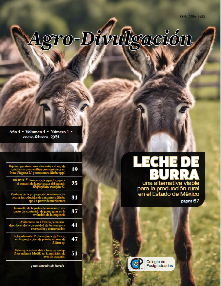 Vélez-Torres, M., Julián-Ramírez, F. L., Calderón-Zavala, G., Flores Hernández, L. A., Lobato-Ortiz, R., Cruz Gutiérrez, E. J., & Corona-Torres, T. (2024). Baja temperatura, una alternativa al uso de colchicina para análisis cromosómicos en fresa (Fragaria L.) y zarzamora (Rubus spp.). Agro divulgación, 4(1). https://doi.org/10.54767/ad.v4i1.277